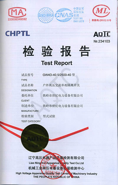 戶外高壓交流隔離開關(guān)檢驗報告